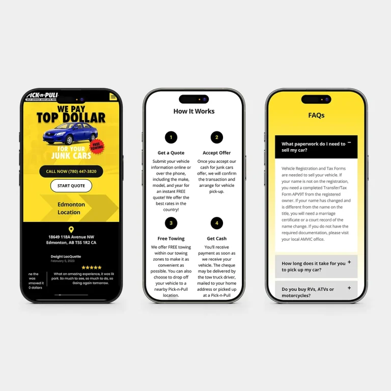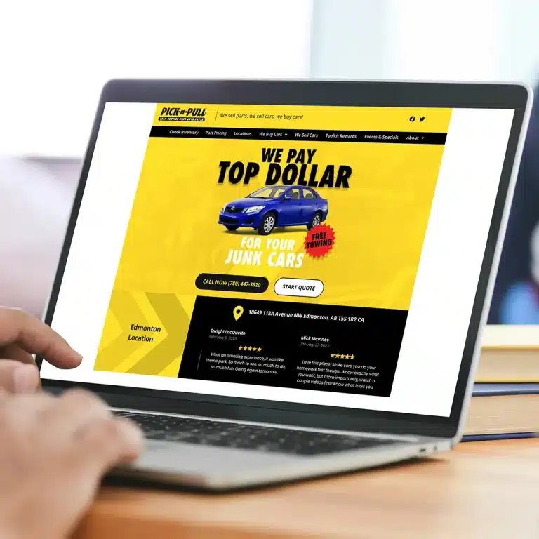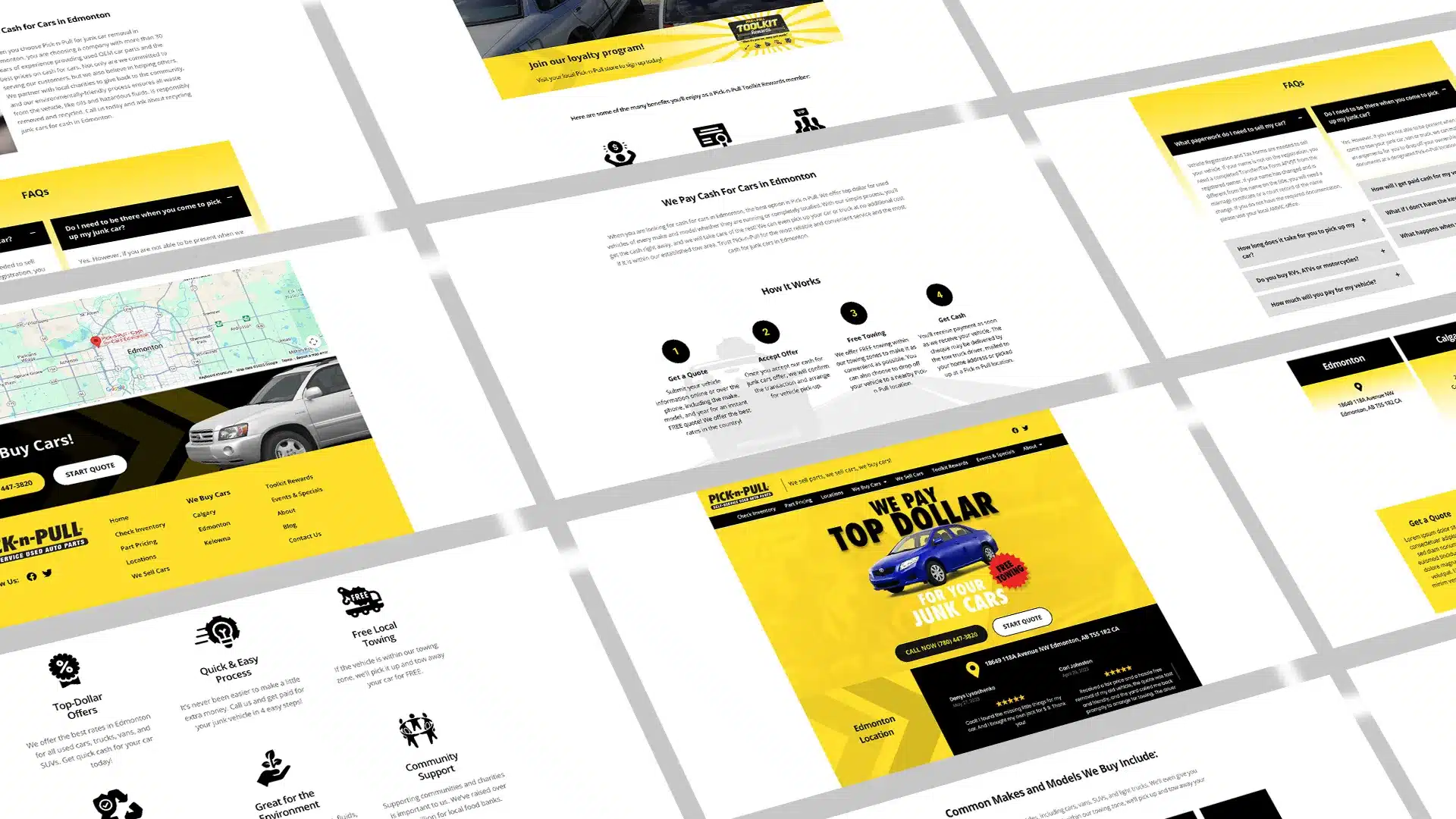 Although well-established across the United States, Pick-n-Pull lacked visibility and brand recognition in Western Canada. They partnered with GrowME to strengthen their presence in Calgary, Edmonton, and Kelowna through a localized digital strategy, improved user experience, and an optimized website that better showcased their fast, customer-friendly services.